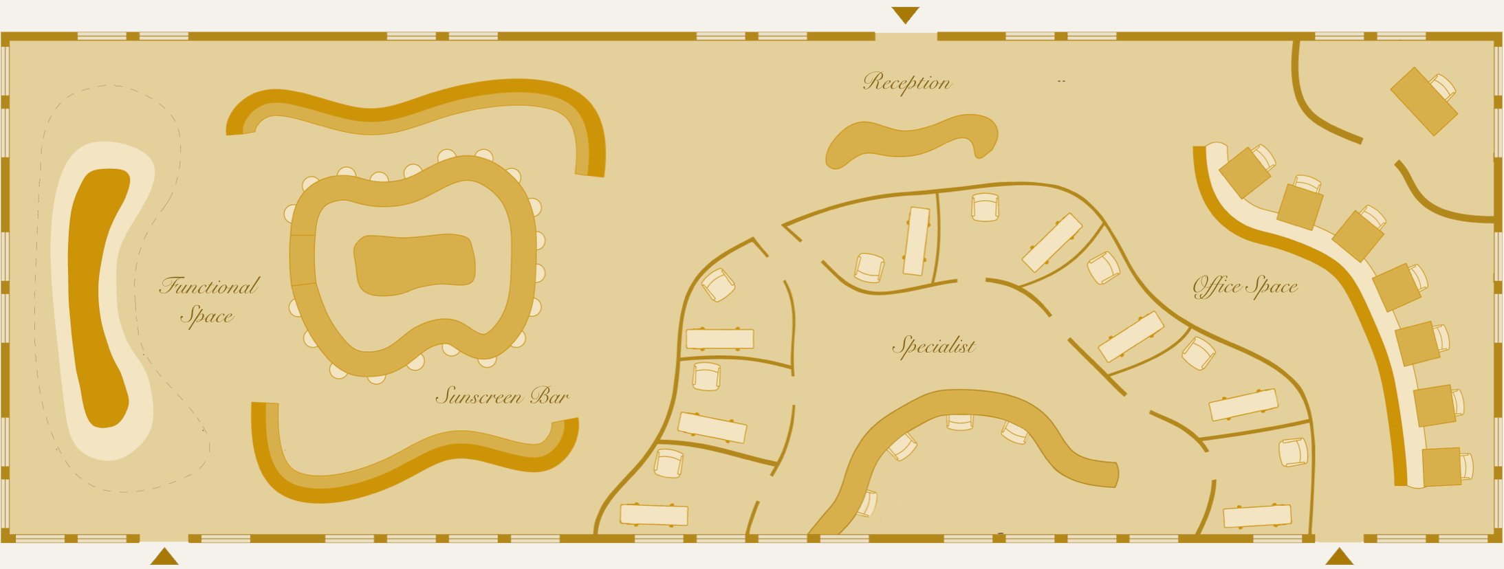 The interior programming supports For Future You’s mission of sun protection and skin cancer prevention through interactive and service-based spaces. Visitors can meet with specialists, create personalized sunscreen formulas at the sunscreen bar, and explore educational displays about sun safety and prevention. These elements transform the headquarters into both a community destination and a resource for preventative health education. The design emphasizes openness, natural light, and fluid circulation to encourage exploration and interaction throughout the space.